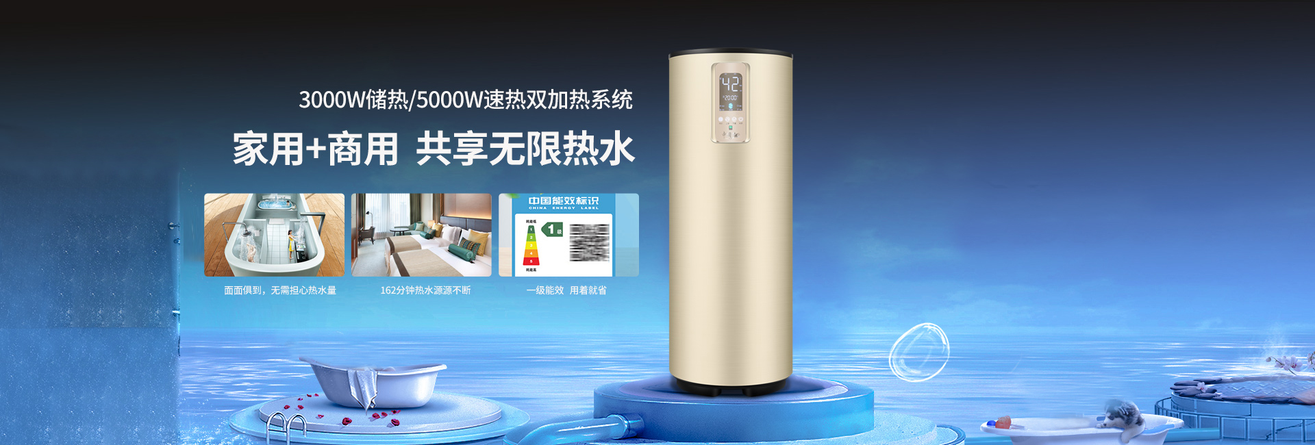 • 雙加熱系統,可實現7倍增容,持續提供987L海量熱水,滿足超20人洗浴暢享無憂,供水量大于你的想象